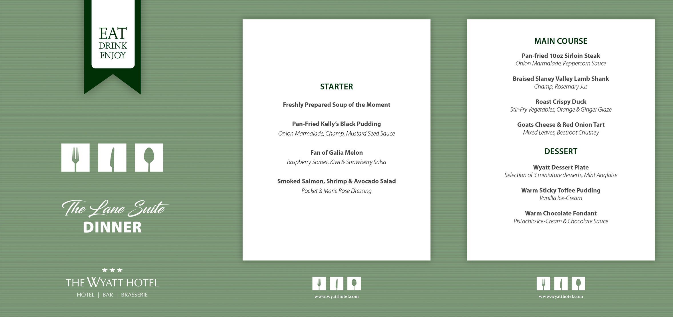 For more information check out The Wyatt Hotel, The Octagon, Westport. Call + 353 98 25027 Web: www.wyatthotel.com Email: reservations@wyatthotel.com