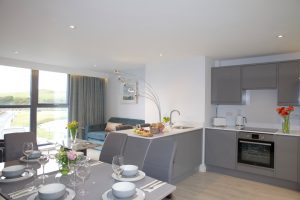 Each apartment offers a spacious, stylish and bright living area with bedrooms experiencing a high standard of finish throughout. A contemporary kitchen with a quartz finish worktop, each complete with touch screen cooker and hob, washer dryer, large refrigerator, microwave and dishwasher. Facilities also include digital control heating, flat-screen TV, Wi-Fi and Netflix.