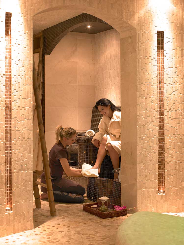 Facilities ; Thermal Suite including foot spas, salt grotto, sauna, steam, ice fountain, lifestyle showers and rasul chamber. Other features include Couples Suite, Balneotherapy Bath, Outdoor Jacuzzi Rock Pool and Garden Conservatory, Relaxation Room, Express Beauty Rooms.
