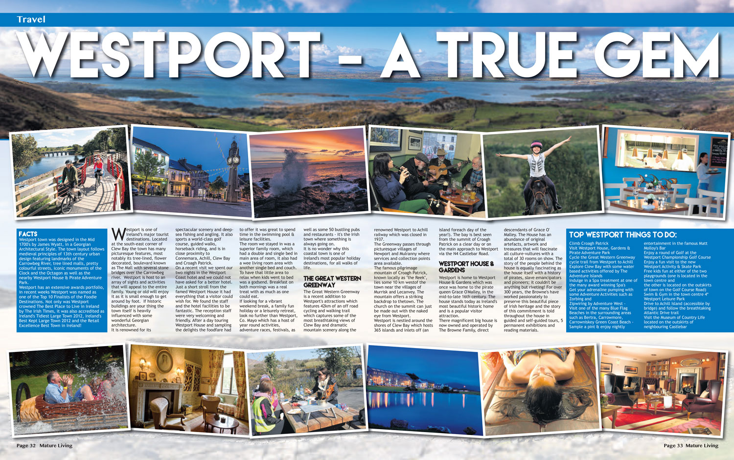 Westport, experience it your way. Award winning Westport is an architectural delightful charm and charisma located on the banks of Clew Bay and Sadowed by the majestic Cragh Patrick pilgrimage mountain.