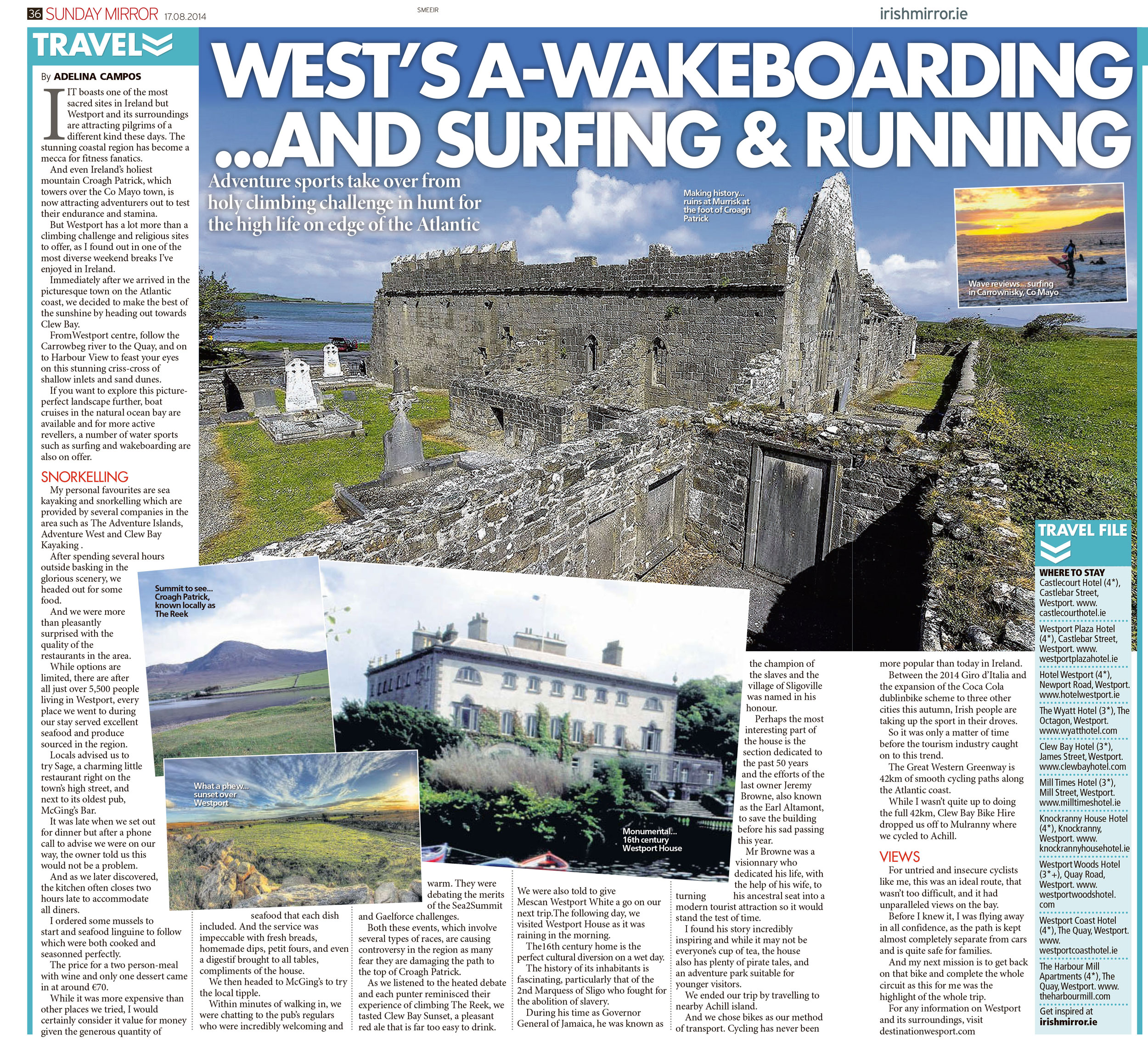 West’s a-wakeboarding… and surfing & running. Adventure sports take over from holy climbing challenge in the hunt for the high life on edge of the Atlantic. It boasts one of the most sacred sites in Ireland bu Westport and its surroundings are attracting pilgrims of different kind these days…