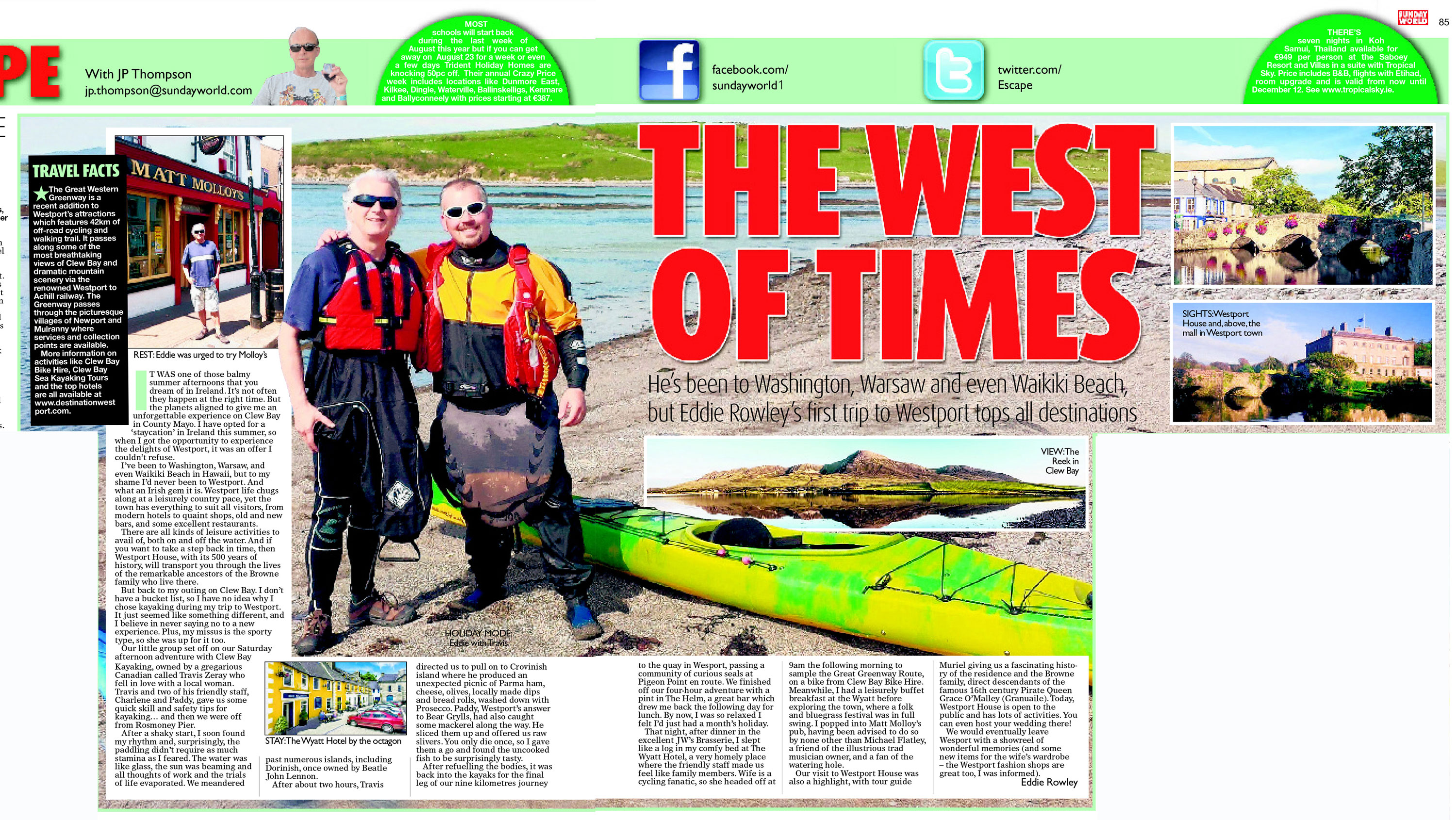 The West of times. He’s been to Washington Warsaw even Waikiki Beach, but Eddie Rowley’s first trip to Westport tops all destinations. It was one of those balmy summer afternoons that you dream of in Ireland…