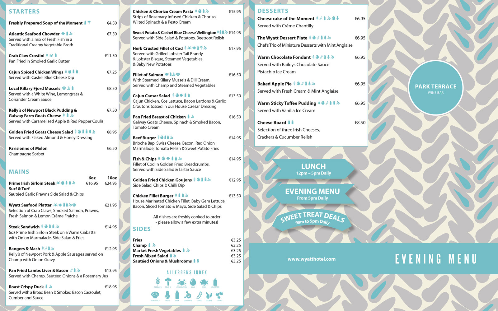 • Evening Food – Casual Dining Menu 5pm to 9pm