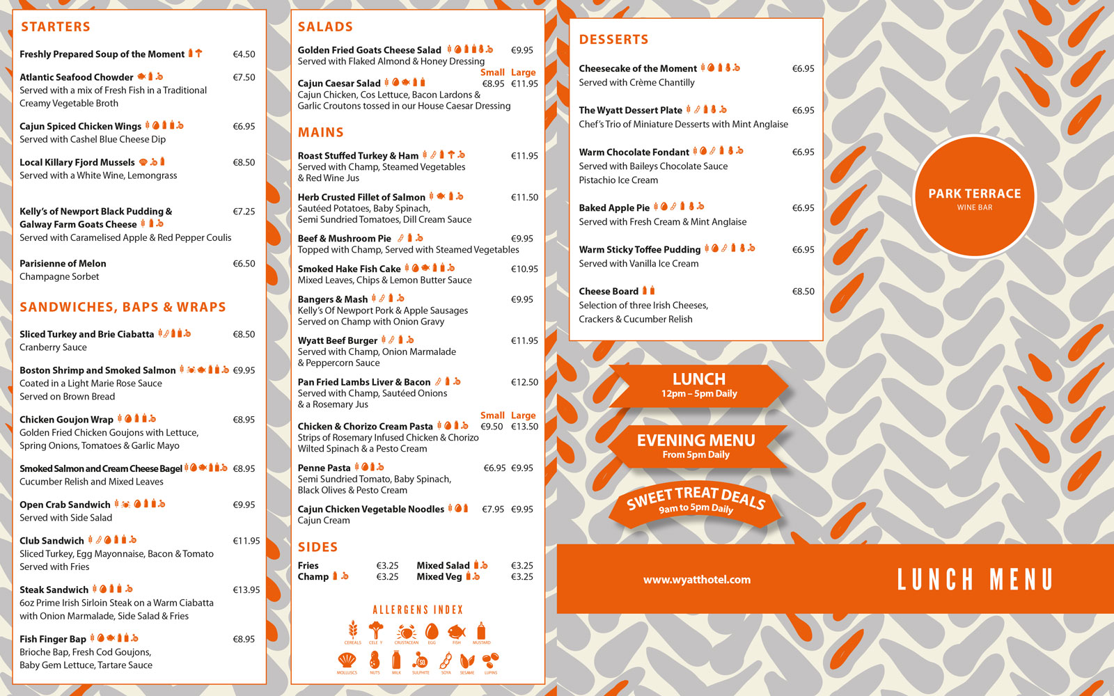 • Call to book +353 98 25027 or reservations@wyatthotel.com